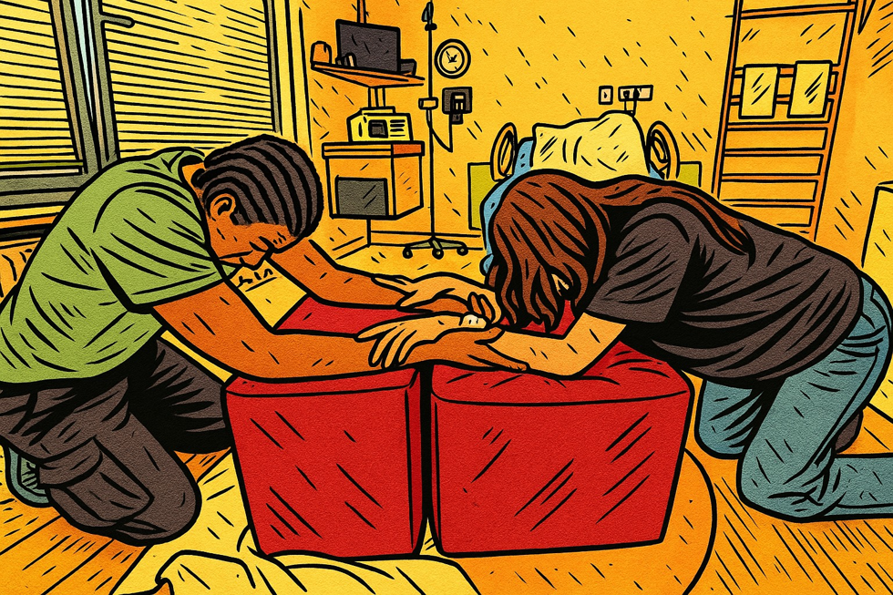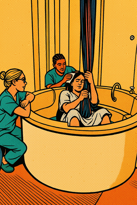 Im Rahmen eines Projektes von drei Hebammenstudierenden entstand diese Ideenlandschaft, die euch individuell durch die Geburt begleiten kann. Diese soll euch Ideen und Möglichkeiten für die Geburt und speziell für die Latenzphase aufzeigen, welche in unserem Kreißsaal zur Verfügung stehen. Dabei entscheidet ihr, bei welchem Ort oder welcher Idee ihr länger verweilt oder nur einen kurzen Zwischenstopp macht.