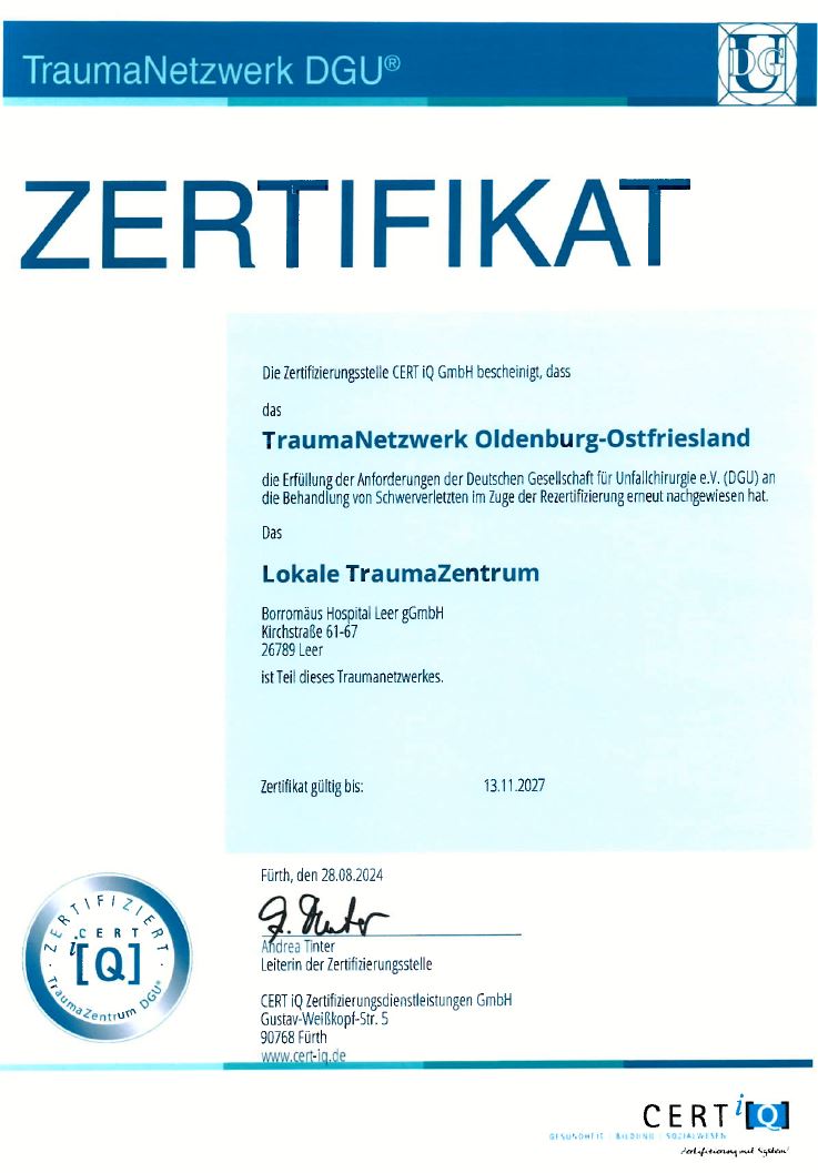 Wir sind Mitglied des Traumanetzwerks Oldenburg/Ostfriesland. Ziel dieses Netzwerkes ist es, dass jeder schwerstverletzte Patient so schnell wie möglich in einer geeigneten Klinik versorgt wird. Als Grundlage der Behandlung von Schwerverletzten orientieren sich alle Kooperationspartner an den aktuellen Leitlinien der Deutschen Gesellschaft für Unfallchirurgie.